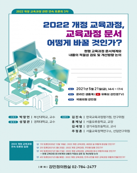 [충청뉴스큐] 강민정 의원은 오는 5월 21일 오후 2시부터 ‘2022 개정 교육과정, 교육과정 문서 어떻게 바꿀 것인가?’ 토론회를 개최한다.