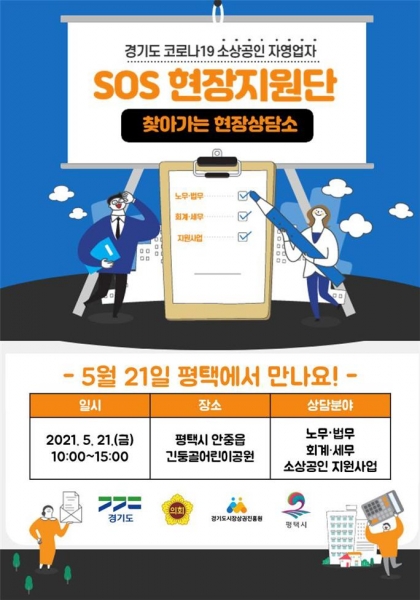 [충청뉴스큐] 평택시는 경기도 주최·경기도시장상권진흥원 주관으로 운영하는 ‘소상공인·자영업자 SOS 현장상담소’가 오는 21일 평택에 찾아온다.