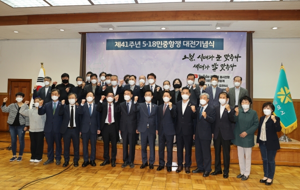 이 자리에서 권중순 의장은 “우리가 어려울 때 마다 위기를 극복하고 민주주의를 지킬 수 있었던 것은 5·18정신이 살아있기 때문에 가능한 것”이라며“민주주의를 지켜낸 민주영령과 유공자 여러분들의 정신을 다시한번 마음에 새기며 대전시의회도 더 나은 사회를 만들기 위해 최선을 다하겠다”고 말했다.