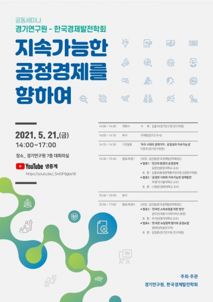 [충청뉴스큐] 경기연구원과 한국경제발전학회가 오는 21일 오후 2시 경기연구원에서 ‘지속가능한 공정경제를 향해’를 주제로 공동세미나를 개최한다.