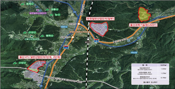 앞서 지난 2020년 7월 과학기술정보통신부는 울산과학기술원, 울산반천일반산단, 울산하이테크밸리일반산단 등 3개소 총 3.01㎢을 ‘울산 울주 강소연구개발특구’로 지정했다.