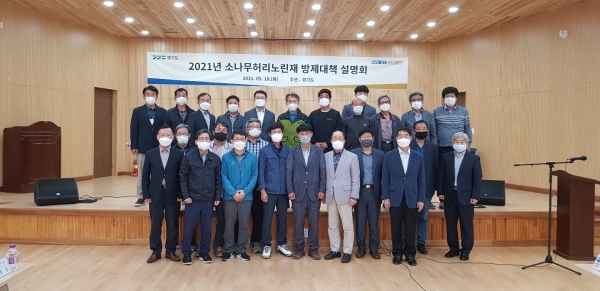 이날 설명회에서 경기도 산림환경연구소 권건형 연구사는 소나무허리노린재 방제계획 설명을 통해 해충 박멸에 대해 다양한 연구가 진행되고 있다고 밝혔다.