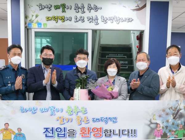 [충청뉴스큐] 안성시 대덕면은 지난 20일 면사무소 민원실에서 ‘2021년 1000번째 관외전입자’를 환영하고 축하하는 자리를 마련했다.