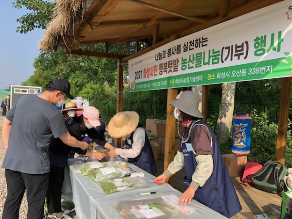 [충청뉴스큐] 화성시민행복텃밭이 올봄부터 키운 농산물을 수확해 22일 첫 나눔행사를 가졌다.