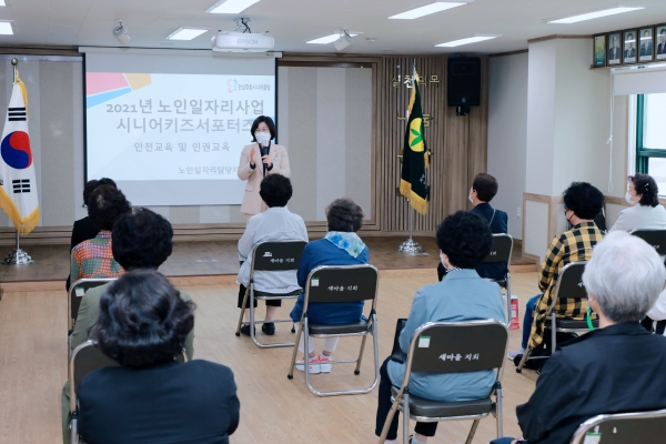 이번 교육은 노인일자리 수행기관인 안성맞춤시니어클럽이 지난 17일부터 오는 25일까지 5회기에 걸쳐 일자리 참여자에게 코로나19 방역수칙 및 안전교육을 실시하는 내용으로 김보라 시장은 지난 17일부터 매회기 교육에 참석해 노인일자리 사업의 취지와 중요성을 설명하고 어르신들의 적극적인 참여와 안전을 당부했다.