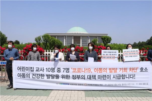 정춘숙 의원과 사교육걱정없는세상은 4월 26일부터 5월 2일까지 7일간 서울·경기 지역 국공립 어린이집 원장 및 교사, 학부모 총 1,451명을 대상으로 코로나19가 아동발달에 어떠한 영향을 미쳤는지에 대해 설문조사를 실시한 바 있다.