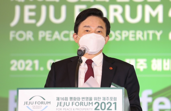 원희룡 지사는 25일 제주 해비치 호텔 앤 리조트 크리스탈홀에서 열린 제16회 제주포럼 프리 컨퍼런스에서 기조사를 통해 젊은 세대들이 직면하고 있는 현 사회의 문제점을 지적하는 한편 청년들의 긍정적이고 진취적인 미래 비전에 대해 제시했다.