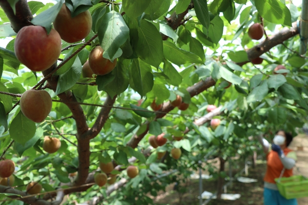 시설 하우스‘플럼코트’가 영동군에서 재배되어 고품질의 맛과 향으로 전국 소비자들의 입맛을 사로잡기 위해 한창 출하되고 있다.