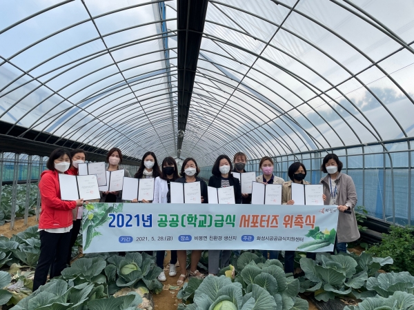 [충청뉴스큐] 화성시 공공급식지원센터가 28일 비봉면 공공급식 친환경 농산물 재배농가에서 ‘공공급식 서포터즈’위촉식을 개최했다.