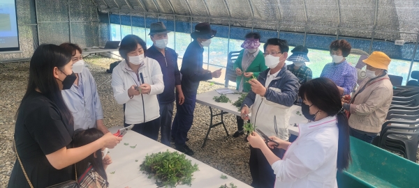 지난 5월 29일에 진행한 4강 교육은 화단용 국화 재배 실습으로 현장접수 선착순 20명을 대상으로 국화 삽수를 포트에 삽목하는 체험실습을 했다.