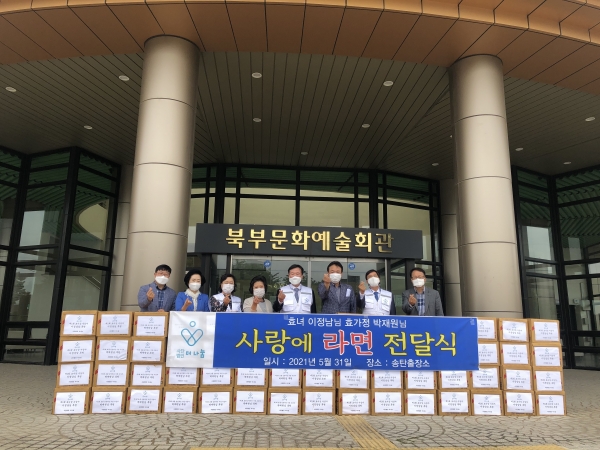 [충청뉴스큐] 사단법인 더 나눔은 지난 5월 31일 평택시 송탄출장소를 방문해 북부관할 저소득계층을 위한 라면 60박스를 기부했다.