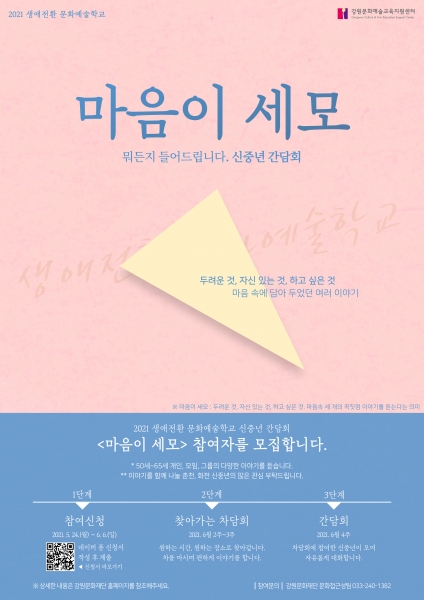 신중년 간담회 ‘마음이 세모’는 춘천 및 화천 지역에 거주하는 신중년 및 중장년이면 참여할 수 있다.