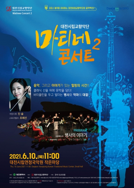 [충청뉴스큐] 대전시립교향악단은 6월 10일 오전 11시, 대전시립연정국악원 작은마당에서‘마티네 콘서트 2’를 연주한다.
