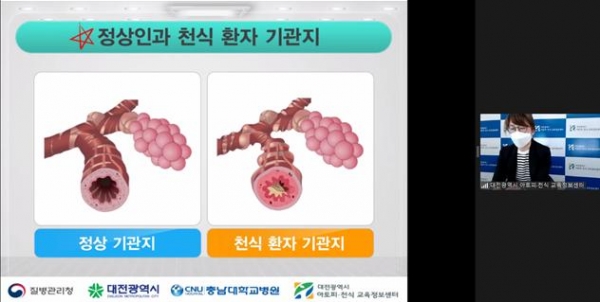 대전충청권 최초로 충남대학교병원에 설립된 ‘대전 아토피·천식 교육정보센터’개소 1주년을 기념해, 코로나19 확산방지를 위해 비대면 교육으로 이루어졌다.