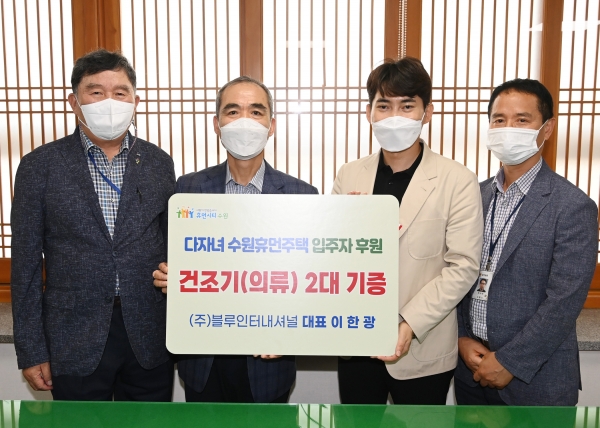 [충청뉴스큐] 의류·잡화 직수입업체인 블루인터내셔널이 “다자녀 수원휴먼주택에 입주한 다자녀 가정에 전달해 달라”며 수원시에 의류 건조기 2대를 기부했다.