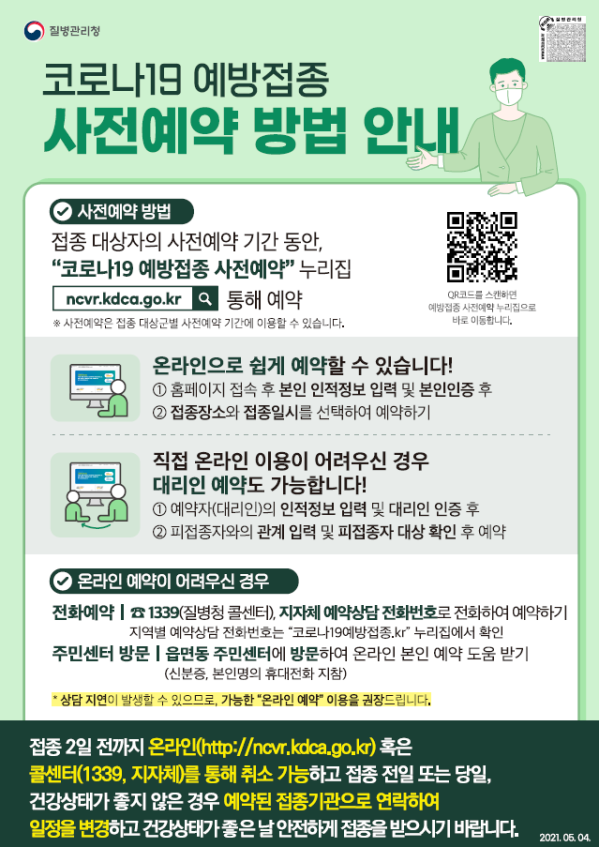 [충청뉴스큐] 코로나19 예방접종 대응 추진단은 6월 4일 0시에 코로나19 예방접종 사전예약을 마감한 결과, 치명률이 높은 60세 이상 74세 연령층 약 733만명이 예약을 완료해, 예약률은 80.6%라고 밝혔다.
