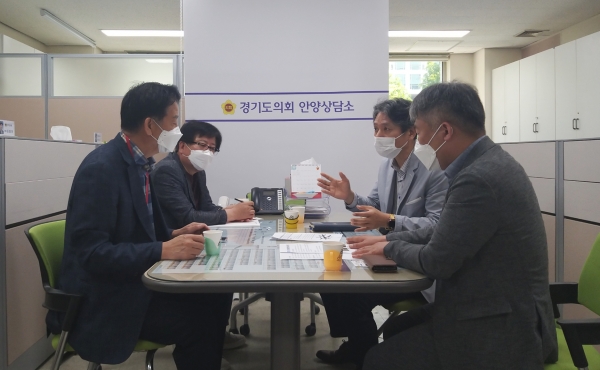 [충청뉴스큐] 조광희 의원은 4일 경기도의회 안양상담소에서 ㈜WSC 차인석대표, 정윤성 공동대표, 안양시 백경래 교통정책팀장과 함께 스마트 스쿨존 안전시스템구축과 관련해 논의하는 자리를 가졌다.