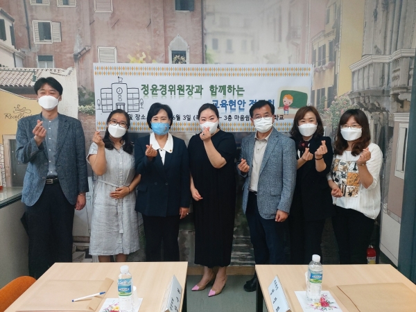 이날 정담회는 정윤경 교육기획위원장을 비롯한 임현상 교장, 김공주 학교운영위원장, 김수진 학부모회장, 학부모위원 등이 참석한 가운데 학교 현안에 대한 논의와 함께 학교 시설을 둘러보는 시간을 가졌다.
