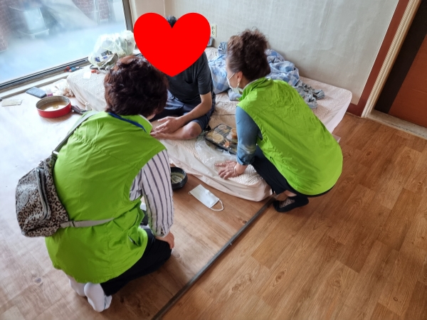 당뇨합병증으로 인한 하지장애로 거동이 불편해 건강과 끼니 해결에 곤란을 겪고 있던 김OO씨에게 천안웨딩베리컨벤션에서 제공하는 도시락을 전달하고 열악한 주거환경 및 위생상태 등을 점검해 이불세탁 지원 등 전반적인 맞춤형서비스를 진행했다.