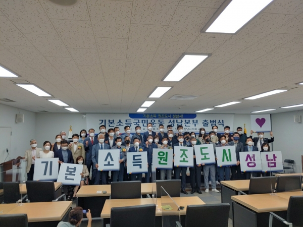 [충청뉴스큐] “성남시 청년배당정책은 기본소득 원조도시로서의 면목을 보여주는 것” 기본소득국민운동 성남본부가 6일 오후 2시, 성남시의회 4층 세미나실에서 출범식을 갖고 ‘기본소득 민주주의 실천’을 다짐했다.