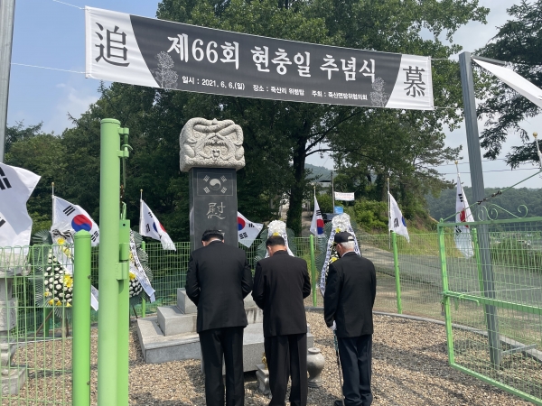 이날 추념식에는 6·25 참전유공자와 유가족, 전몰군경 유족, 죽산면 기관사회단체장, 죽산 면민 등 50여명이 참석했으며 코로나19 사회적 거리두기 방역수칙 준수 하에 진행됐다.