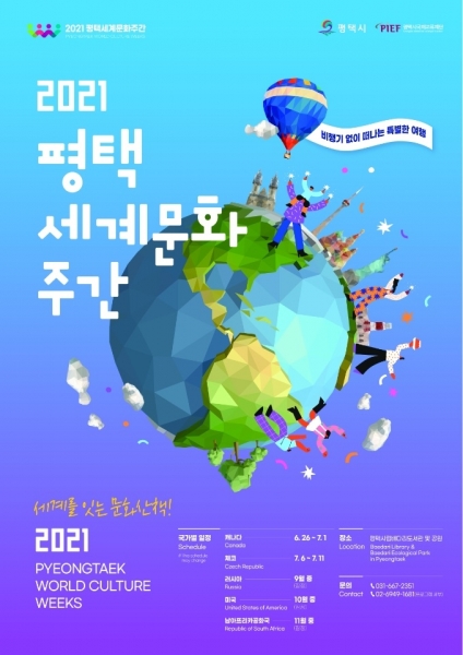 평택시가 주최하고 평택시국제교류재단이 주관하는 2021평택세계문화주간이 오는 26일 캐나다문화주간을 시작으로 국가별 일정에 따라 배다리도서관·배다리생태공원 일대에서 열린다.
