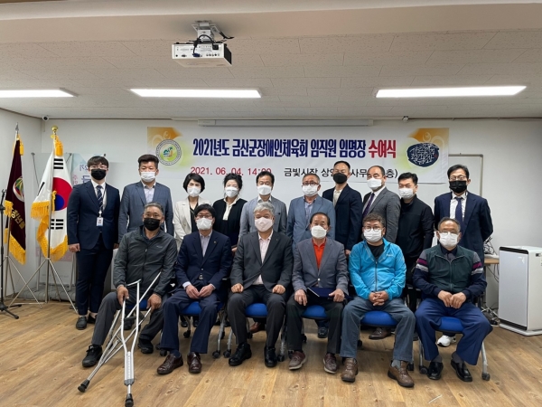 [충청뉴스큐] 금산군장애인체육회는 지난 4일 금산금빛시장 상인회 회의실에서 올해 금산군장애인체육회 임원 및 운영위원, 감사, 신입행정직원 임명장을 수여했다.