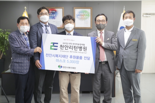 [충청뉴스큐] 천안리턴병원은 지난 8일 코로나19 극복을 위한 마스크 5,000장을 천안시복지재단에 전달했다.