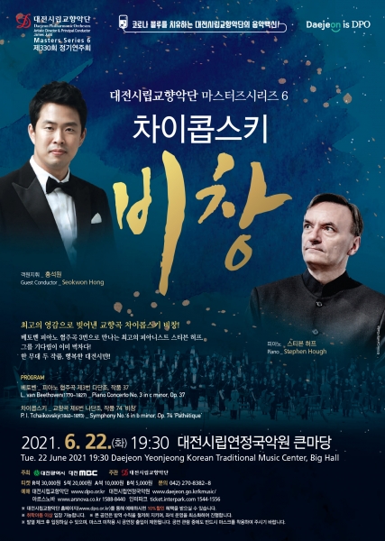 [충청뉴스큐] 대전시립교향악단은 오는 6월 22일 저녁 7시 30분, 대전시립연정국악원 큰마당에서 객원지휘자 홍석원의 지휘와 피아니스트 스티븐 허프의 협연으로 마스터즈시리즈 6 ‘차이콥스키 비창’을 연주한다.