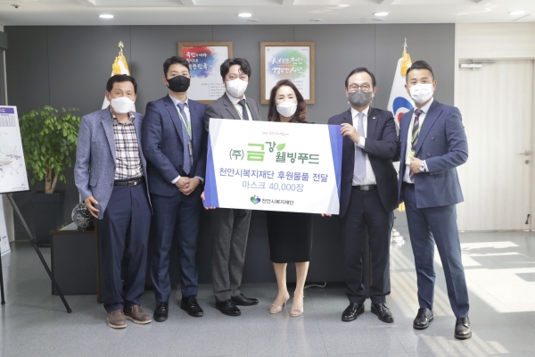 [충청뉴스큐] 주식회사 금강웰빙푸드가 지난 9일 코로나19 극복을 위한 마스크 2만장을 천안시복지재단에 전달했다.