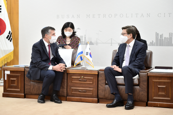 박형준 시장은 주한이스라엘대사를 만나 먼저 부산을 방문해 준 것에 대해 감사 인사를 전하며 “이스라엘의 지정학적 환경과 국정 운영 과정은 한국과 유사한 면이 많다고 생각하며 한국과 이스라엘의 협력 강화는 세계 평화와 경제 발전에도 큰 도움이 될 것으로 기대한다”고 말했다.