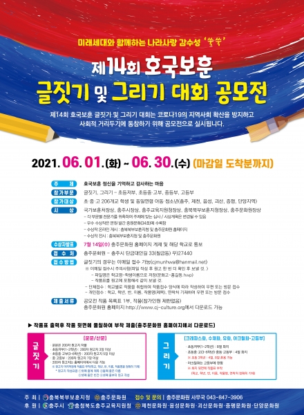[충청뉴스큐] 충주문화원과 충북북부보훈지청은 6월 호국보훈의 달을 맞아 제14회 호국보훈 글짓기 및 그리기 대회 공모전을 실시한다.