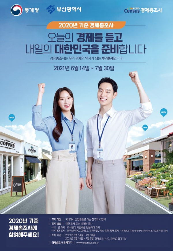 부산시 구자영 통계빅데이터담당관은 “코로나19의 큰 영향을 받은 2020년 기준 경제활동을 파악하는 것으로 경제회복을 위한 다양한 지원정책에 활용도가 높을 것으로 보인다”며 “이번 통계조사가 차질 없이 추진될 수 있도록 사업체의 많은 관심과 협조를 부탁드린다”고 말했다.