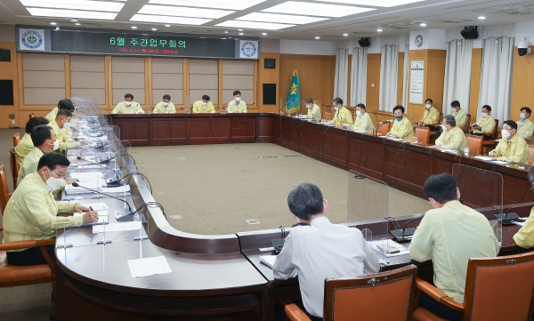 [충청뉴스큐] 허태정 대전광역시장은 14일 시청 대회의실에서 열린 주간업무회의에서 코로나19 방역, 공사현장 안전, 호우대비 하천정비 등 도시안전사항을 점검했다.