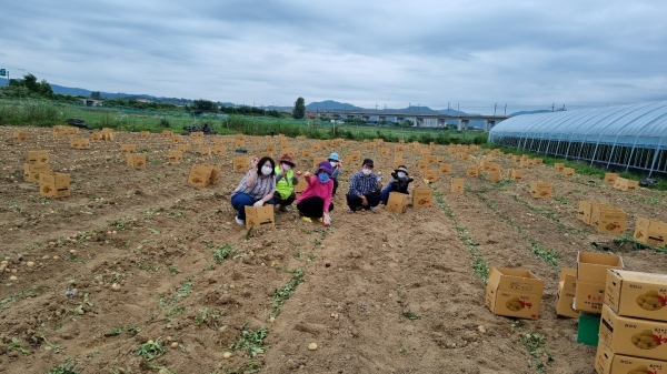 이날 수확활동은 철저한 방역수칙 준수 하에 진행했으며 주민자치회 위원 등 30여명이 약 300박스의 제철 감자를 수확했다.