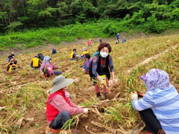 군 여성단체협의회 김혜숙 회장을 비롯한 회원 80여명은 지난 17, 18일 단양읍 장현리, 가곡면 대대리 농가를 방문해 이름 아침부터 마늘 수확 및 운반 작업을 도우며 구슬땀을 흘렸다.