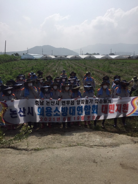 이에 의용소방대연합회 의용소방대원은 연무읍 마산리 소재 양파 재배 농가를 찾아 양파 순자르기, 캐기, 마대 담기 등의 작업을 도왔다.