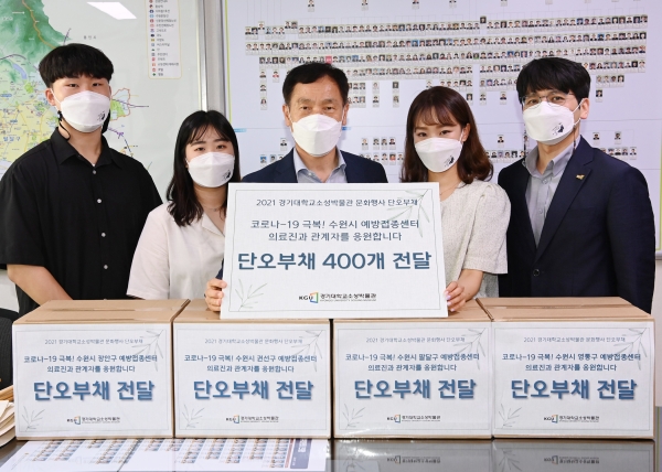 경기대 소성박물관이 “수원 예방접종센터 의료진·종사자에게 전달해 달라”며 수원시에 경기대 학생들의 응원 메시지가 담긴 전통부채 400개를 기증했다.