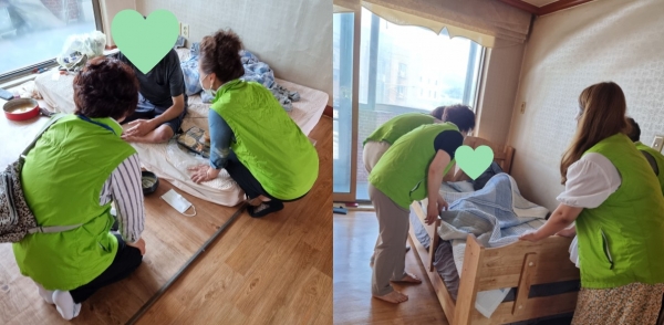 이에 행복키움지원단은 지속적인 방문을 통해 바닥에 매트를 깔고 누워 생활하는 A씨가 좀 더 편안하게 생활할 수 있도록 직접 맞춤형 침대를 구매해 지원했으며 방수커버, 이불, 패드, 베개 등도 함께 전달했다.