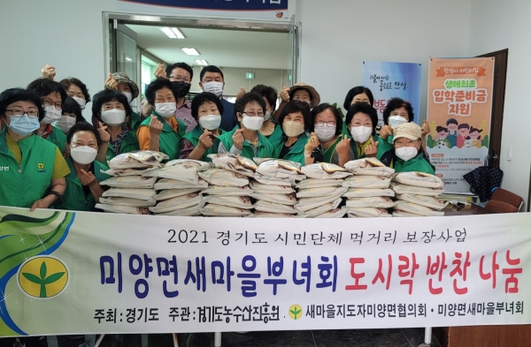 이번 사업은 경기도농수산진흥원에서 공모한 2021년 먹거리보장 시민활동 지원 사업에 선정된 결과 추진하게 됐으며 미양면새마을부녀회는 총 5회에 걸쳐 지역에서 생산된 농산물을 이용해 꾸러미를 만들고 취약계층에 전달할 계획으로 이달에는 지역에서 생산된 찹쌀 5kg 50포를 지원한다.