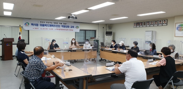 [충청뉴스큐] 천안시 백석동은 지난 23일 행정복지센터 회의실에서 백석동 마을복지계획추진단 역량강화 교육을 실시했다.