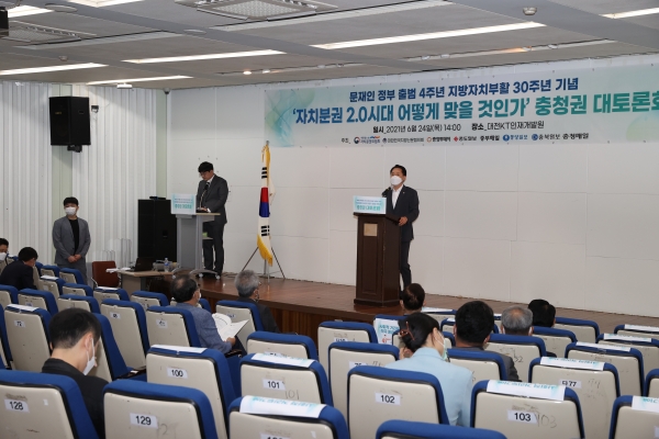 이번 토론회는 자치분권위원회가 자치분권 2.0시대를 열기 위한 국민적 공감대 형성과 과제를 진단하기 위해 전국을 순회하며 대한민국지방신문협의회와 공동으로 개최하고 있는 권역별 토론회로 지난 3월 서울을 시작으로 5월 경인권과 호남권, 6월 대경권에 이어 대전에서 충청권 토론회가 열렸다.