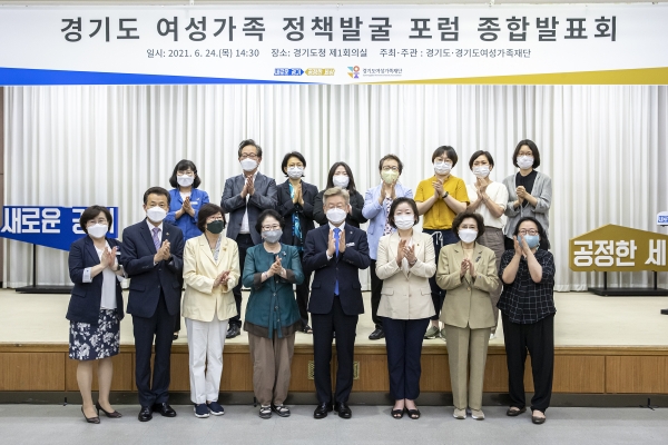경기도는 24일 오후 경기도청에서 이재명 경기도지사, 문경희 경기도의회 부의장, 김성수 경기도의회 여성가족평생교육위원회 부위원장, 정정옥 경기도여성가족재단 대표이사 등 50여명이 참석한 가운데 ‘경기도 여성가족 정책발굴 포럼 종합발표회’를 개최했다.