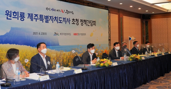 제주특별자치도는 중소기업중앙회 초청으로 이날 오후 4시 메종글래드호텔 제이드홀에서 ‘제주특별자치도지사 정책 간담회’를 개최했다고 24일 밝혔다.