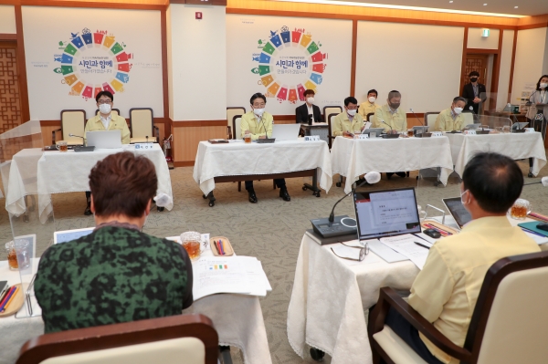 이날 회의에서는 탄소중립 청사 실현을 위해 3無 청사 구현, 자동차 이용 줄이기, 녹색커튼 확대, 기후위기 시계 설치 등 공무원들이 솔선수범해 실천할 수 있는 사업에 대해 의견을 나누고 단계별 실천 강도와 지속적인 추진방안에 대해 논의하는 시간을 가졌다.