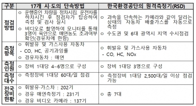 경유차에 대해서는 매연측정기와 비디오측정장비를 활용하여 단속했고, 휘발유차와 LPG차에 대해서는 원격측정기를 활용했다.