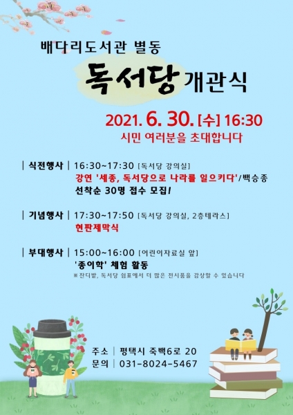 [충청뉴스큐] 평택시립배다리도서관은 오는 30일 별동 독서당의 문을 연다.