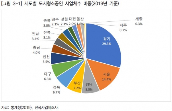 도내 도시형소공인 사업체 수는 10만8,554개로 전국 29.3%를 차지하며 규모 2위인 서울시의 2배 이상이다.