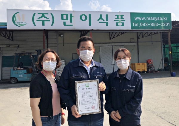[충청뉴스큐] 충주시 농업기술센터는 ㈜농업회사법인 만이식품이 한국식품연구원으로부터 배추김치, 깍두기 등 김치류에 대해 전통식품품질인증을 받았다고 29일 밝혔다.
