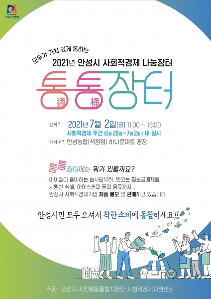 [충청뉴스큐] 안성시는 오는 7월 2일 오전 11시부터 오후 4시까지 안성농협 하나로마트 광장에서 사회적경제 ‘통통장터’를 운영한다고 밝혔다.